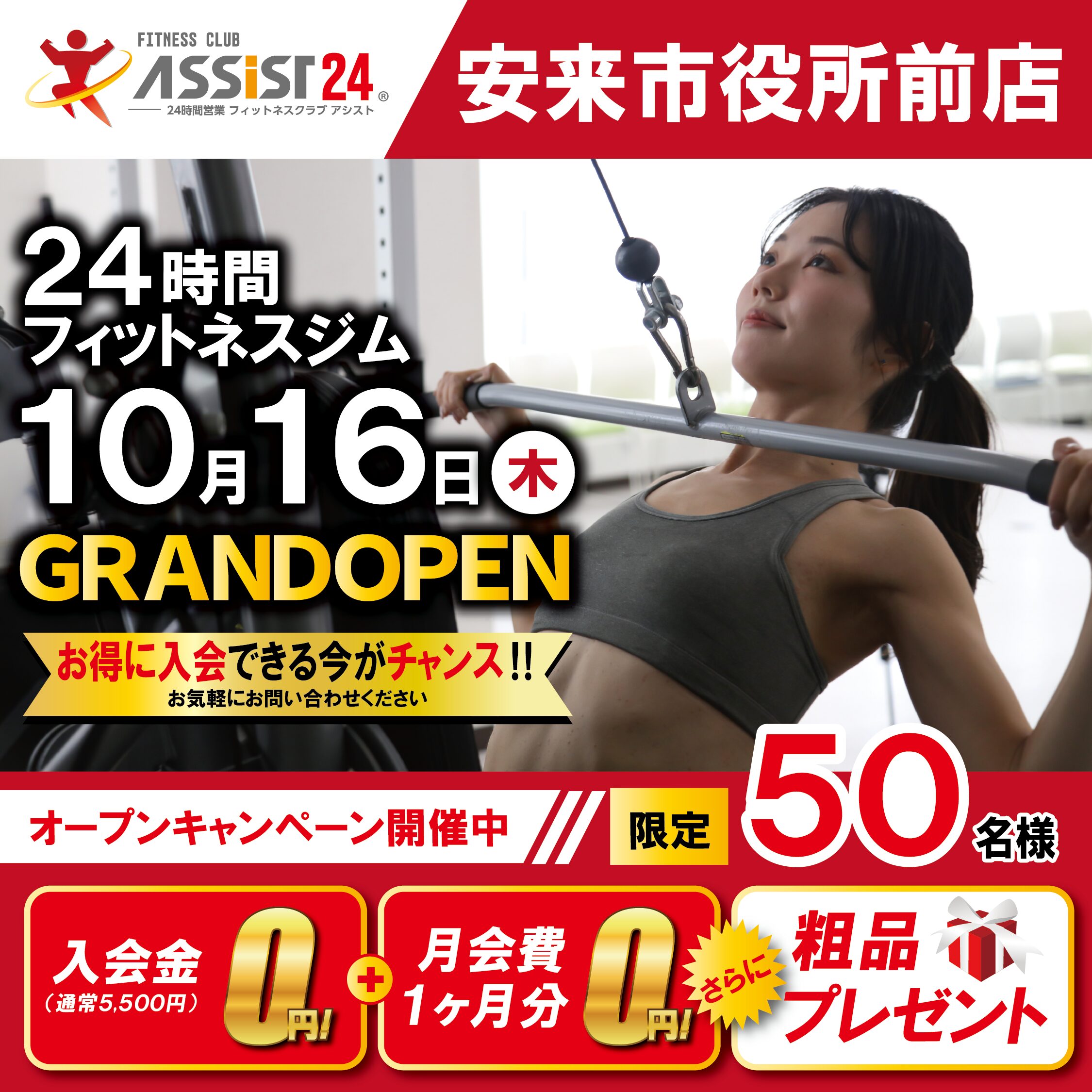安来エリアに、24時間365日使えるフィットネスジム「アシスト24安来市役所前店」が新登場!