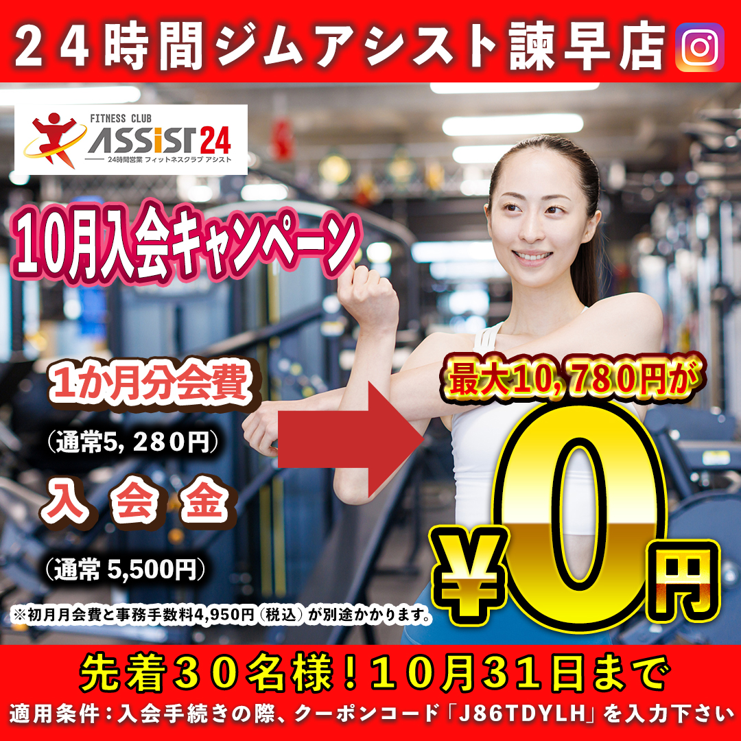 この機会に是非、24時間ジムアシスト24長崎諫早店へご来店ください!