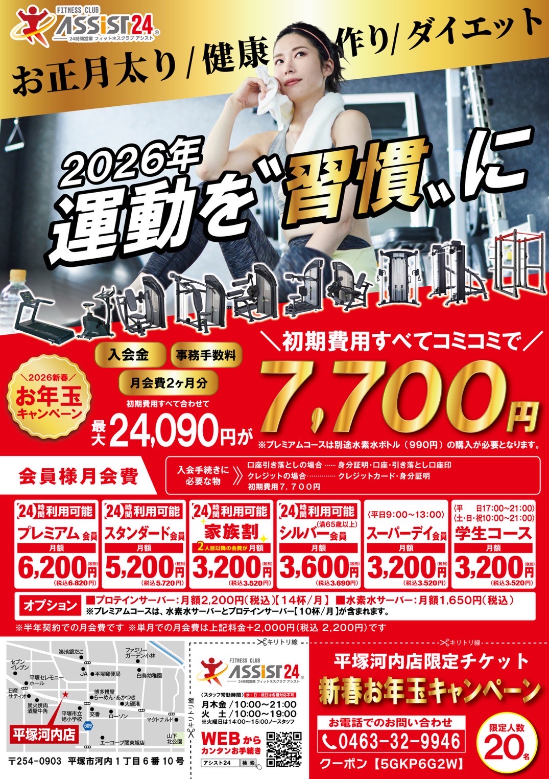 この機会に是非、24時間ジムアシスト24平塚河内店へご来店ください!